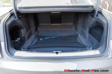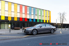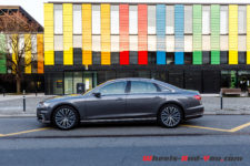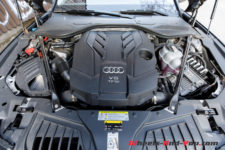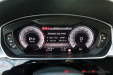 A ma grande surprise, c’est un discret V6 qui trône au milieu du compartiment moteur et il offre 340 ch et 500 Nm. Ce dernier est couplé à une boîte à vitesse Tiptronic à 8 rapports. Enfin, la traction intégrale « Quattro » et les quatre roues sont directrice ce qui, vu la longueur du véhicule, permet d’afficher un excellent diamètre de braquage de 12.5 mètres.