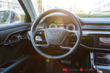 Avec ses 5.17 mètres de long et ses 1.94 mètre de large, forcément, elle en impose. La version L avec ses 5.3 mètres ne serait tout simplement pas rentrée dans mon garage, je remercie donc la marque de m’avoir livré la « petite » A8.