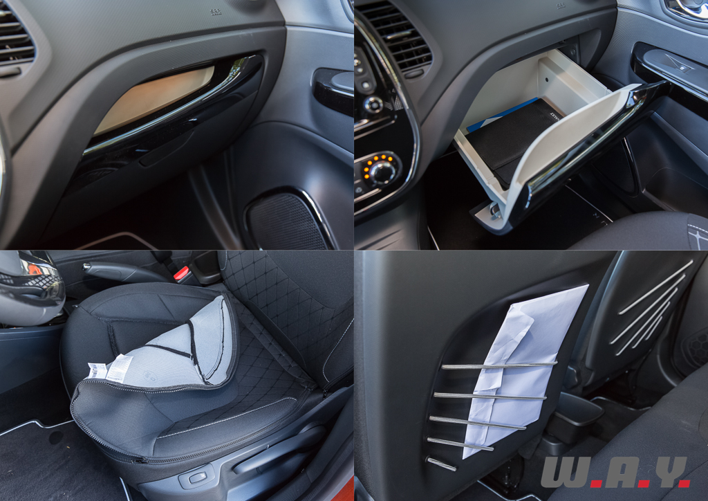 Mais l’intérieur du Captur réserve aussi quelques très bonnes surprises, comme cet immense tiroir de 11 litres monté sur glissière et qui fait office de boîte à gants. Aussi astucieux que pratique, contrairement aux ficelles élastiques derrière les sièges avant qui officient comme aumônières. Très originales visuellement, elles permettront au mieux d’y glisser le courrier du jour avant que les enfants ne s’amusent à tirer dessus pour les faire claquer contre le siège. Ambiance garantie ! Autre bonne idée, la sellerie déhoussable et lavable en machine qui permet un nettoyage facilité ou une remise à neuf lors de la revente.