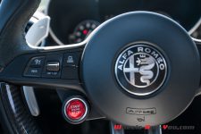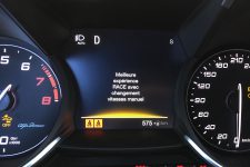 Stade ultime où l’on pilote plus qu’on ne conduit la voiture, voici le mode Race. Non seulement la suspension est dans sa configuration la plus dure, mais toutes les assistances de conduite sont déconnectées. Alfa Romeo vous invite alors à commander la boîte par les palettes fixes située de part et d’autre du volant via un message explicite entre les deux compteurs ! Ce dernier affiche également des “shift lights” qui, comme sur une voiture de compétition, indiquent le régime où il convient de passer le rapport supérieur.