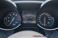 Si l’infotainment propose des prestations standards en 2017, l’écran situé entre les deux compteurs analogiques est sobre mais complet. Les informations disponibles évoluent en fonction du mode de conduite choisis. Leur nombre est de 4 : Normal, All Weather pour favoriser adhérence et motricité en conditions de grip réduit, Dynamic et Race, tout deux sélectionnant un tarage de suspensions plus sportif mais le premier avec les assistances de conduites actives, le second sans.