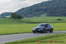 Dans cette configuration, c’est un véritable rodéo qui s’engage avec la voiture, le couple et la puissance alliés à l’action du Torque Vectoring ayant vite fait de faire glisser l’arrière si l’on dépasse la limite d’adhérence. Je suis un habitué de longue date des propulsions, et cette Giulia Quadrifoglio m’offre vraiment des sensations qui me rappellent certaines des autos de course que j’ai pilotées, me procurant un plaisir que j’avais quasiment oublié en cette époque où presque tout ce qui roule avec plus de 500 ch est à quatre roues motrices.