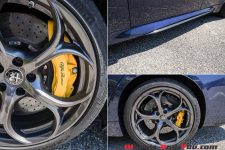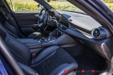La transmission est assurée au choix par une boîte manuelle à 6 rapports ou une boite automatique ZF 8 rapports à convertisseur. C’est de cette dernière version dont je dispose pour mon test. Là où la Giulia Quadrifoglio se distingue de toutes ses concurrentes directes, c’est que l’ensemble du couple n’est transmis qu’aux seules roues arrière ! Oui, vous avez bien lu : 510 purs-sangs italiens dans une propulsion classique ! De quoi vous procurer de sacrées sensations derrière son volant, je vous l’assure. Le système Torque Vectoring agit comme un autobloquant actif pour améliorer la motricité de l’essieu moteur. Le freinage de mon véhicule est assuré par de superbes disques carbone-céramique à l’efficacité redoutable.