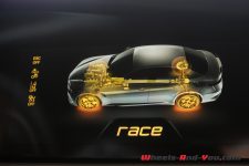 Une rotation de la molète dédiée me fait adopter le mode Dynamic. Les suspensions se raidissent sensiblement et deviennent très sportives, manquant toutefois toujours un peu de détente à mon goût. Lorsque j’augmente le rythme sur petites routes, c’est le train avant qui m’impressionne le plus : il est d’une efficacité incroyable ! De tous mes essais, je n’avais jamais conduit une auto homologuée sur route avec autant de train avant. En plaçant l’auto en fort appuis à haute vitesse, je peux rajouter 10° de volant sans créer le moindre sous-virage, l’avant rentrant sans broncher vers l’intérieur du virage, que la chaussée soit sèche ou mouillée. Bluffant !