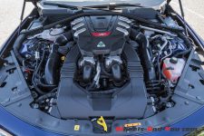 Grâce à l’usage de fibre de carbone, le poids demeure raisonnable pour une sportive de ce gabarit à 1’787 kg en ordre de marche. La répartition est idéale avec 52% sur l’essieu AV et 48% sur l’arrière. Sur les plus de 2’500 km de mon essai, la consommation s’élève à 12.15 l/100km, ce qui demeure très raisonnable vu le niveau de performance.
