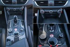 Cette version Quadrifoglio dispose toutefois de magnifiques sièges baquets en fibre de carbone Sparco en option dont seul le réglage de hauteur est électrisé, sans doute pour gagner du poids. Leur maintien est fantastique, digne d’un véritable baquet de course. D’ailleurs, la position de conduite est idéale, sans doute l’une des meilleures de toutes les voitures que j’ai essayées pour Wheels And You : l’assise peut être réglée très basse, le volant approché suffisamment même avec le dossier de siège bien incliné et les palettes fixes placées derrière le volant garantissent une ergonomie sportive parfaite. Quant au repose pied, il permet de maintenir la jambe gauche tendue plutôt que repliée comme sur trop d’autos modernes.