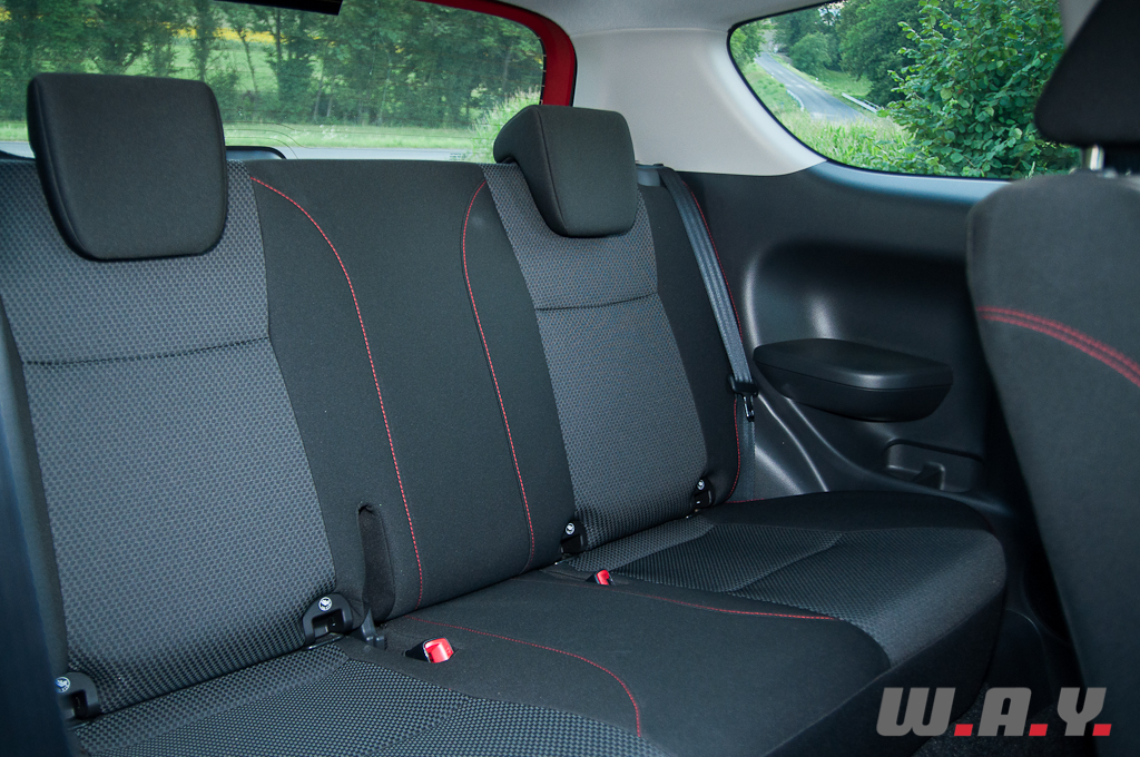 Pour atteindre les places arrière, il faut obligatoirement passer par le côté passager ce qui n’est pas très pratique et peut même, dans certains cas de stationnement, se révéler dangereux. Une fois installé, la place y est suffisante certainement due à une garde au toit élevée.