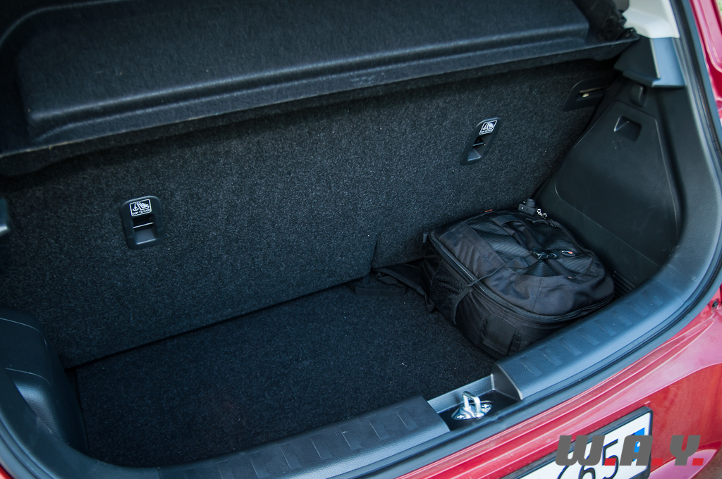 L’ensemble des plastiques ne fait pas dans le haut de gamme comme dans certaines petites allemandes, nous ne sommes pas non plus dans du « cheap » mais plutôt moyenne gamme. Nous trouvons aussi deux miroirs de courtoisie dans les pares- soleil, une prise USB, une petite boite à gants et une radio réglable depuis le volant.