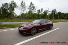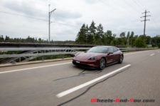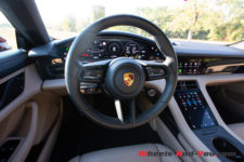 La Taycan 4S est mise en mouvement par deux moteurs, un sur chaque essieu. À l’avant il est à rapport unique alors qu’à l’arrière il y a un second rapport qu’on sent très distinctement s’enclencher lorsqu’on dépasse les 100 km/h. L’essieu arrière pourrait être équipé en option du Power Steering Plus pour augmenter l’agilité de la voiture, mais après cet essai je ne pense pas que ce soit nécessaire.