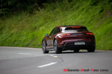 Avec plus d’espace à la tête et dans le coffre, il semble logique que cette Sport Turismo soit plus adaptée pour voyager à quatre personnes. Là aussi elle s’en sort avec brio grâce à des places arrière qui restent confortables. Il n’y a que le prix d’une telle auto qui cristallise les discussions. Nous ne sommes pas encore habitués à l’écart entre une électrique classique et celle d’une marque premium, rendant l’appréciation de l’écart tarifaire d’autant plus difficile à juger.