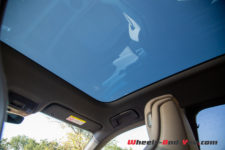 C’est à l’arrière qu’on profite vraiment du toit panoramique vitré qui apporte la lumière à bord. C’est là aussi que le gain de hauteur de tête de la version Sport Turismo est le plus important : +45mm alors que le conducteur n’en a que 9. À l’avant, le pare-brise monte haut et le toit n’est pas dans ma vision périphérique.