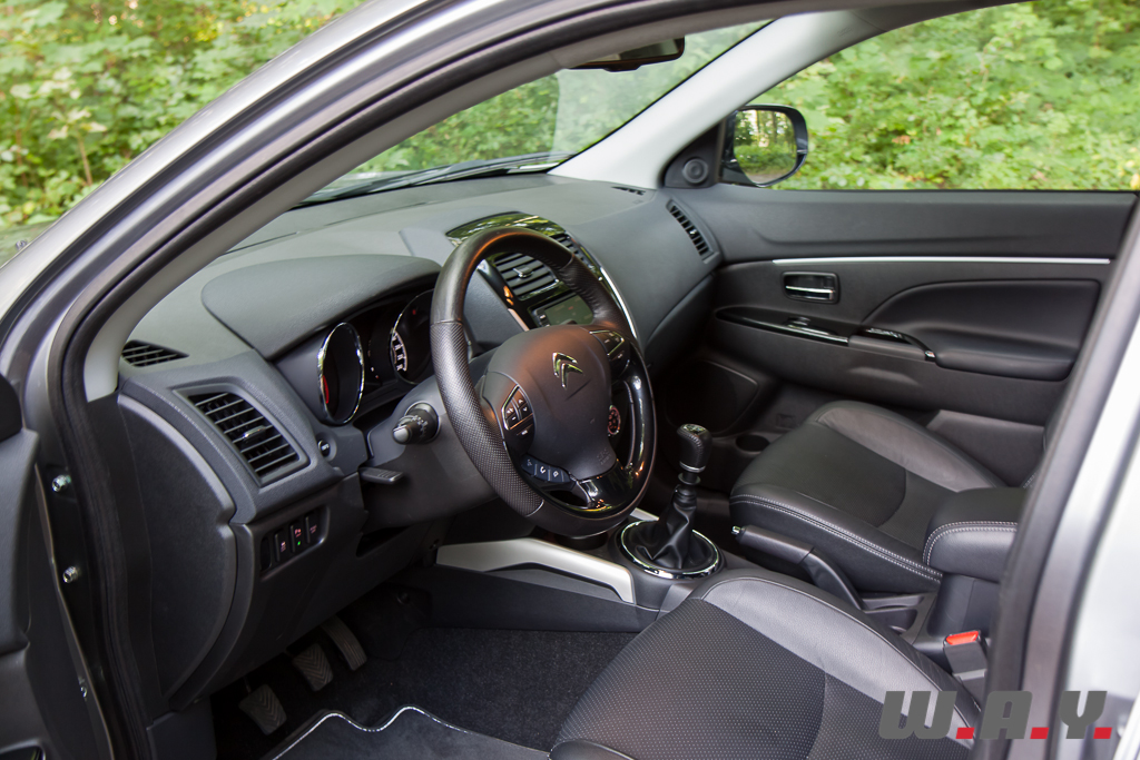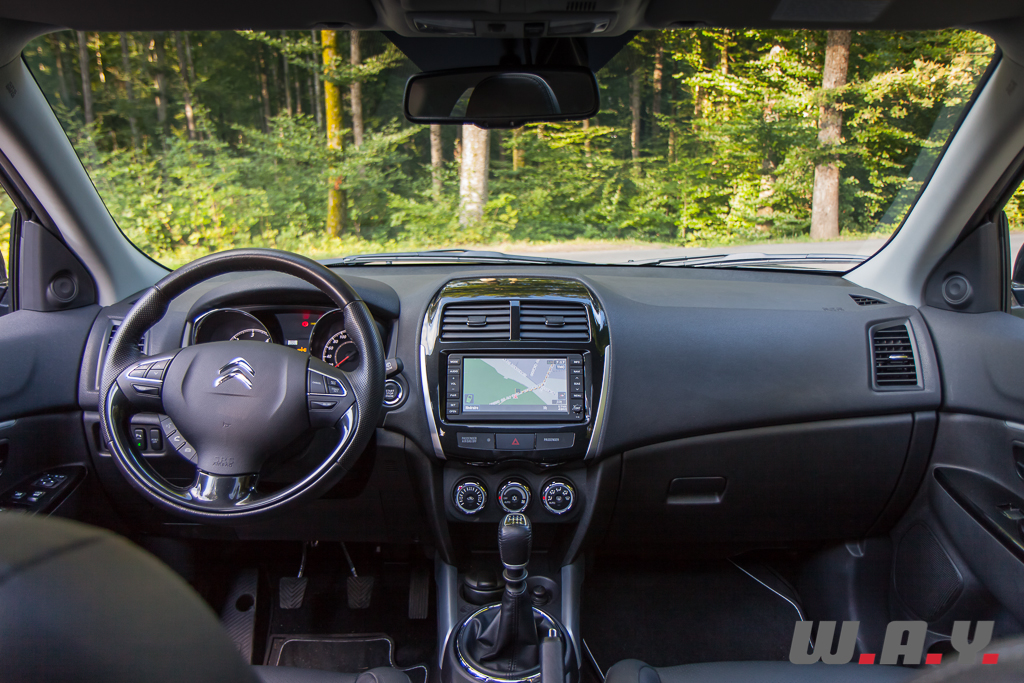 Contrairement au look extérieur, l’habitacle de la C4 Aircross n’est pas du tout typé Citroën. Pas certain que les coutumiers de la marque apprécient cet environnement nippon. En effet, mis à part le volant, les plastiques noirs laqués et l’ajout de quelques chromes je me croirais à bord du Mitsubishi ASX. La qualité des matériaux reste cependant acceptable et agréable au toucher, même si la qualité de l’ensemble est un ton en dessous de la C4 classique ainsi que du reste de la gamme Citroën.