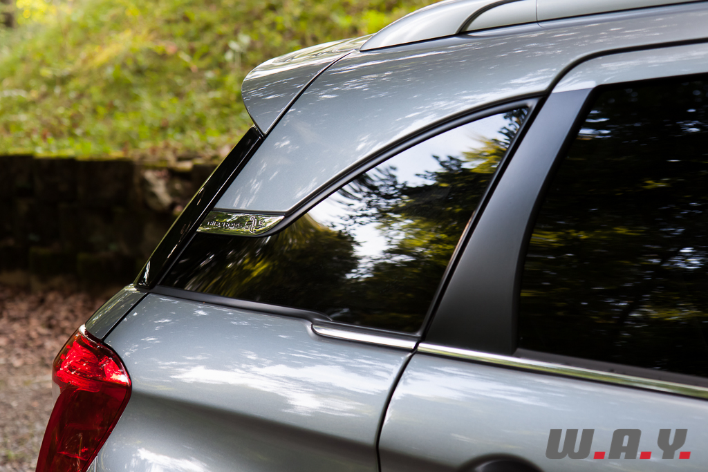 La face avant a été spécialement travaillée avec une calandre formée des fameux double chevrons se prolongeant jusqu’aux projecteurs. Les élégantes LEDs verticales, intégrées dans les ouïes du bouclier, soulignent le regard expressif de notre baroudeur. Les nervures parcourant le capot proposent un côté sportif qu’accentuent encore les jantes en alliage de 18 pouces de mon modèle finition « Exclusive ». Même si les portières sont communes aux trois cousines, le profil de la C4 Aircross garde également une forte identité Citroën grâce au vitrage latéral de custode modelant la carrosserie en forme d’aileron de requin inversé. On y retrouve la rose des vents chromée, symbole des SUV Citroën, et la signature Aircross. La poupe est arrondie, avec des pare-chocs remontant jusqu’aux blocs optiques en forme de boomerang, pas de doute, je suis bien en présence d’une Citroën.
