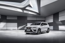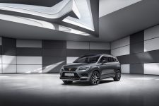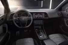 Le premier modèle a profité du tout frais blason tribal cuivré est basé sur l’Ateca. Emportant le quatre-cylindres essence 2.0 turbo de 300 ch, il sera équipé du système de transmission intégrale 4Drive, qui analyse les conditions d’adhérence en temps réel et réparti le couple selon le besoin aux roues nécessiteuses. En plus de proposer de traditionnels modes “Normal”, “Sport”, “Tout-Terrain” ou “Neige”, la fonctionnalité 4Drive permet d’activer le mode “CUPRA”, rendant le moteur au maximum réactif et ajustant la suspension adaptive pour apporter un cran supérieur dans la sportivité.