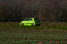 La voiture est légère et les freins Brembo 4 pistons n’ont aucun mal à la stopper. Ça freine fort et longtemps. Mais dès que la route se dégrade, il faut ralentir le rythme là ou une Polo GTi passerait à fond. La faute à ces amortisseurs Koni FSD. Ils sont tarés trop lâches en détente et trop fermes en compression. Sur circuit, c’est le pied mais, sur route mixte, le compromis n’est pas idéal. A vive allure, sur un tracé bosselé, la voiture décolle parfois, entraînant des pertes de motricité. Mais il faut reconnaître que je vais très vite et je teste vraiment en attaquant un peu fort. Je suis très loin de ma conduite habituelle. En roulant moins vite, le châssis encaisse mieux et cela redevient plus « gérable ». Il faut signaler aussi que la précision du train avant a été améliorée par rapport à l’ancienne génération. Cette mise au point est encore davantage perçue en mode Sport. Par ailleurs, dans ce mode, la réponse à l’accélérateur est directe, comme si le turbo soufflait en permanence. C’est divin car cela repart à la moindre sollicitation.