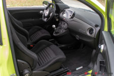 Les phares xénon, de série sur ce modèle, éclairent parfaitement la nuit venue et soulignent bien que l’on n’est pas dans une vulgaire 500. Les feux de jour sont à LED. Sous les pare chocs, des applications sont peintes en gris pour cette série. La couleur verte acidulée bien nommée « Vert Adrénaline » fait un tabac dans la rue. Je ne compte plus les enfants ou parents disant : « Oh regarde la jolie petite voiture ». Mais attention, vous ne passerez pas inaperçus.