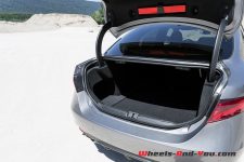 A noter encore quelque chose de très pratique, et surtout plutôt rare sur une berline, la banquette arrière est rabattable. Vous pouvez ainsi profiter d’un volume de chargement intéressant, 480 litres au minimum avec cependant une ouverture de coffre relativement étroite. Que les skieurs ne s’inquiètent pas, la Giulia dispose également d’une trappe à skis, vous aurez donc le choix pour aménager l’espace de rangement à votre guise.