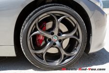 Notre voiture d’essai arbore une teinte « Gris Stromboli » qui lui sied parfaitement. Oui j’admets, ce n’est qu’un gris de plus, mais je dois reconnaître que celui-ci offre quelque chose de particulier. Cependant, mon cœur penche pour le « Bleu Montecarlo ». Histoire de parfaire le tableau, les incontournables jantes Quadrifoglio rendent notre Giulia vraiment craquante.