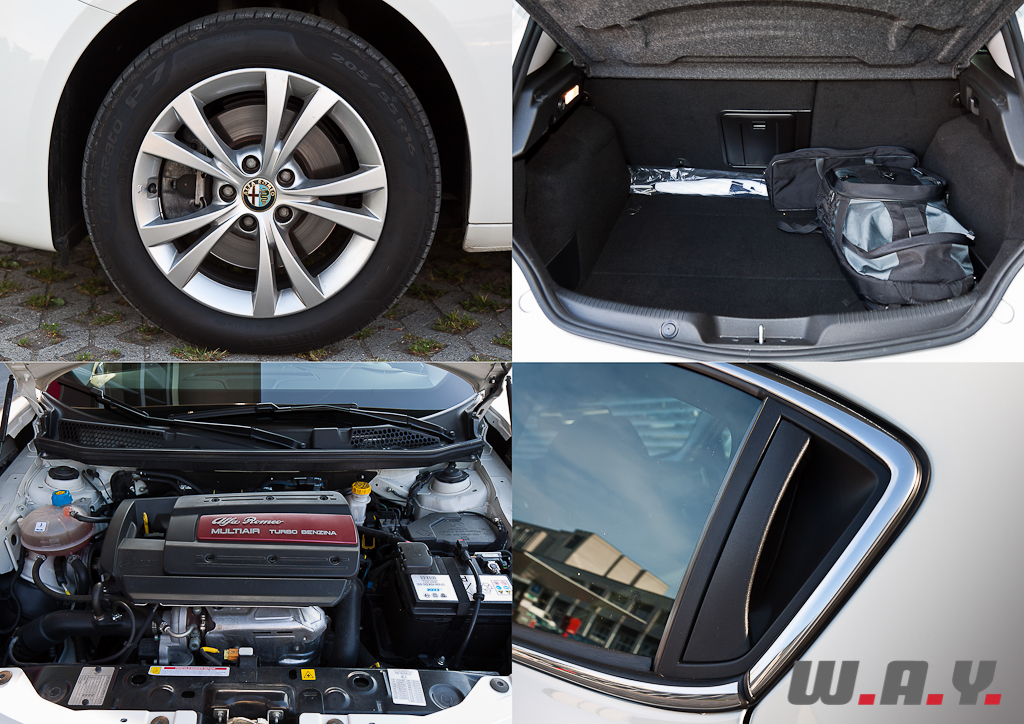 Malgré une cavalerie pour le moins abondante compte tenu de sa cylindrée modeste, ce quatre cylindres Multiair est tout à fait civilisé. Un poil creux en-dessous de 2’000 t/min, il saura vous gratifier de reprises franches une fois le turbo entré en fonction. Il joue même de quelques vocalises rauques entre 4’000 et 6’000 t/min, tout en poussant avec force et constance, de quoi ravir les Alfistes. Malheureusement une fois la barrière des 6’000-6’500 t/min la fête est finie et il est temps de passer le rapport supérieur. Eh oui, les montées rageuses et sans fin des anciens « Bialbero » ont été sacrifiées sur l’autel de l’efficience écologique. Il n’en demeure pas moins que ce moulin, à l’inverse de son grand frère le 1750 de 235 CV qui équipe la Giulietta Quadrifoglio au sommet de la gamme, délivre un réel agrément et jouit d’un côté ludique et pétillant que l’on retrouve trop peu dans le segment.