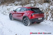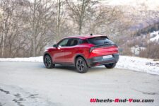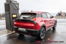 La batterie de 51 kWh net ne permet pas d’envisager de longs trajets sans recharge, d’autant plus qu’avec des températures basses lors de notre essai, la consommation moyenne s’établit à 23.76 kWh/100km. L’autonomie totale théorique dans ces conditions n’est alors que de 215 km. Toutefois, en conditions normales et températures plus douces, on doit pouvoir tabler sur une consommation moyenne entre 18 et 20 kWh/100km, ce qui correspond à une autonomie moyenne d’environ 270 km.