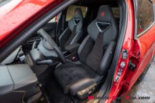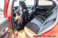 Cette version Speciale est pourvue du Pack Sport et ainsi, les assises s’habillent d’une sellerie en Alcantara et de sièges baquets au maintien très correct. Les dossiers de ces derniers sont creusés afin d’offrir un peu plus d’espace aux genoux des passagers arrière mais ils sont tout de même assez volumineux.