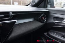 Derrière quelques artifices stylistiques se cachent des équipements déjà connus, à l’image de l’instrumentation numérique, de l’écran central et des commandes physiques du tableau de bord ou de la console centrale. Reposant sur le système d’exploitation maison, le système d’infodivertissement présente les mêmes graphismes que ceux des autres véhicules du groupe mais aussi la même expérience d’utilisation : quelques bugs ou ralentissements, en particulier la caméra arrière qui mets du temps à s’afficher. Si elle ne présente pas un niveau de finition à la hauteur – plastiques durs parfois mal ajustés ou mal ébavurés – la présentation reste plaisante.