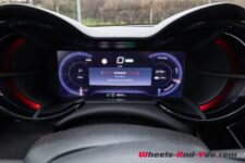 Côté recharge, l’Alfa Romeo est équipée d’un chargeur embarqué d’une puissance de 11 kW. La recharge rapide est identique à celle des autres véhicules dotés de cette batterie, avec une puissance de recharge maximale de 100 kW en courant continu qui, selon la fiche technique, permet de passer de 10 à 80 % de charge en 30 minutes. En effectuant une recharge sur borne haute puissance, nous avons mesuré 38 minutes et 58 secondes pour passer de 5 à 90%.