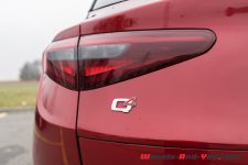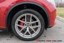Des jantes Trofeo de 20 pouces posent la sculpture Stelvio au sol. J’aurais préféré le Classico en 19 pouces, plus identitaires Alfa Romeo et dont les arrondis des bâtons se marient mieux avec l’esthétique générale du véhicule. Pour avoir eu l’occasion de l’admirer également ainsi, je trouve le Stelvio aussi beau lorsqu’il est en mouvement que statique.