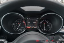 Le cockpit du Stelvio, même s’il n’est pas aussi original que son aspect extérieur, ne détonne pas avec celui-ci. En effet, on y trouve une qualité de matériaux et d’assemblage qui ne dépare pas l’ensemble. S’il cela n’atteint pas tout à fait les standards allemands, des touches latines viennent rehausser la bonne impression générale.