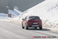 D’emblée je suis séduit par l’équilibre de l’auto. Le Stelvio est doté d’une répartition des masses idéales de 51% à l’avant et 49% à l’arrière, et cela se ressent tout de suite. Sans forcer l’allure et en demeurant sur le mode de conduite “Natural”, j’enchaîne les premiers virages avec un bonheur non dissimulé. Le ressenti de la route n’est pas mauvais, le placement relativement précis, et cela s’améliore encore lorsque je bascule en mode “Dynamic”. J’augmente quelque peu le rythme, l’auto demeure précise avec un roulis très bien contenue pour un SUV.