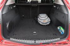 J’ai d’abord cru que mon véhicule de test serait en robe Gris Stromboli, mais j’ai l’excellente surprise de le découvrir en Rouge Competizione, couleur qui, à mon goût, lui sied le mieux. Dès le premier regard, son esthétique me conquiert. Basé sur l’identité visuelle de l’élégante et racée Giulia, le Stelvio m’apparaît littéralement sculptural. A n’en pas douter le plus beau SUV qu’il m’a été donné d’admirer.
