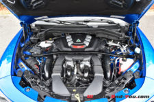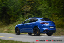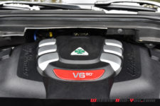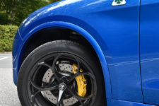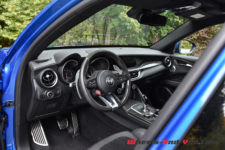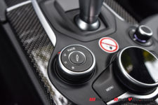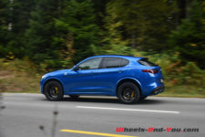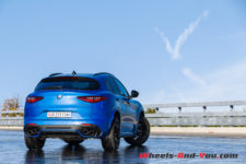 Pour animer ce diabolique SUV transalpin, comme je le disais en introduction de mon article, on retrouve la même motorisation que dans la Giulia Quadrifoglio. Pour rappel, ce V6 2.9 biturbo développé au sein de la prestigieuse marque cousine, j’ai nommé Ferrari, propose 510 ch à 6’500 t/min pour un couple de 600 Nm à 2’500 t/min. Il permet au Stelvio d’atteindre 283 km/h en vitesse de pointe et d’abattre le 0-100 km/h en 3.8 secondes. Grâce aux quatre roues motrices, c’est un dixième de mieux que la Giulia ! La transmission se fait toujours au travers d’une boîte automatique ZF à 8 rapports. A noter que ce Stelvio détient le record du SUV le plus rapide sur la mythique Nordschleife. D’ailleurs mon regret, à l’occasion de cet essai, est de n’avoir pas l’occasion d’emmener la voiture sur un circuit, rapide de préférence tel que celui de Dijon-Prenois.