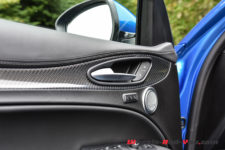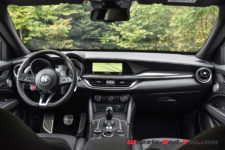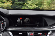 L’habitacle est lui aussi un bel exemple du savoir-faire italien et surtout il n’a rien à envier à la concurrence allemande qui caracole en tête du marché. Parole d’un ami Porschiste conquis par la finition et la présentation de cet intérieur qu’il trouve bien plus attirant que celui de son Macan GTS. Ayant réalisé l’essai de ce dernier en 2017, je ne peux que partager ses impressions. Alfa Romeo a véritablement fait très fort à ce niveau. La qualité est sans reproche, avec en plus un design des plus réussi qui arbore du cuir, de l’alcantara et un peu de carbone.