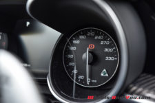 Petite déception à mes yeux, notre voiture d’essai ne dispose pas des sièges baquets Sparco proposés en option. Certes cela à un certain coût, CHF 3’800.-, mais ça colle tellement bien à l’image bestiale de l’engin qu’à mes yeux c’est quasi une obligation de les prendre.