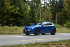 Maintenant que j’ai fait plus ample connaissance avec notre Quadrifoglio d’essai, j’opte plus régulièrement pour le mode « Race » car c’est quand même là que le véritable tempérament de ce Stelvio donne sa pleine mesure et fait sens. En repassant sur certaines routes chères à mes différents tests, je découvre tout le potentiel de ce super SUV. Le châssis est très performant, le moteur plus que généreusement fourni, une alliance qui offre à ce Stelvio Quadrifoglio une âme unique. Quel régal ! Certes, le poids se fait quand même un peu ressentir et la garde au sol un peu haute n’offre pas l’efficacité d’un Macan, mais l’ensemble est véritablement plaisant avec des performances phénoménales. Je regrette juste cette direction qui manque de fermeté et qui ne remonte pas parfaitement le feeling de la route. A ce jeu, un Jaguar F-Pace fait mieux, ce qui me rend impatient d’en découvrir la version SVR.