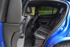 Avec un poids de 1’830 kg en ordre de marche, soit un peu plus que la Giulia, le Stelvio est cependant largement moins bestial. Je soupçonne une cartographie moteur un peu moins pointue ayant pour objectif de satisfaire plus de monde et mieux correspondre à une utilisation quotidienne. Rassurez-vous, les performances sont quand même au rendez-vous, mais ce Stelvio sait aussi se montrer doux comme un agneau, j’y reviens dans un moment.
