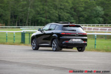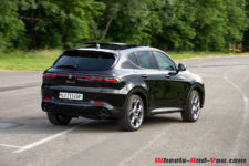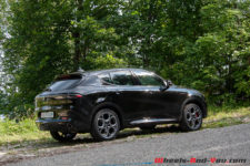 Le quatre cylindres est bien secondé par un châssis rigoureux et l’amortissement Alfa Romeo « Dual Stage Valve Suspension System » (DVS). Très réactif, ce dernier s’adapte à la conduite mais avec beaucoup de fermeté. Le Tonale offre un confort que je qualifie de sportif. Le roulis est bien contenu et même si le touché de direction n’est pas parfait, je le dirige avec précision. Seuls les 300 kg supplémentaires liés à l’hybridation se ressentent, surtout en descente. C’est le point noir de ce Tonale : trop d’embonpoint. Comparé au 1.6 diesel qui développe 130 ch et 320 Nm mais dont le poids n’est que de 1’600 kg, les performances ne sont guère différentes. Batteries pleines, le couple cumulé des deux motorisations font de ce Tonale un SUV puissant, au confort sportif et politiquement correct dans la chasse au CO2.