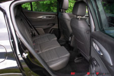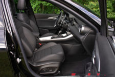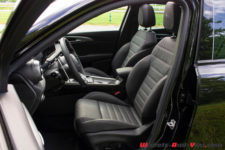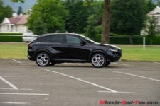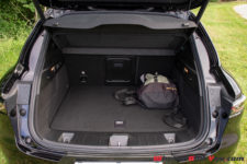 Je m’attendais à plus d’espace à l’avant mais la console centrale est assez large avec ses portes gobelet et son accoudoir. A l’arrière, une fois passée la porte qu’il faut ouvrir en grand, les grands gabarits sont à l’aise. Les sièges en cuir à réglages électriques maintiennent correctement. La qualité des matériaux est correcte même s’il reste ici ou là quelques plastiques durs et des vis apparentes qui pourraient être cachées. Si la température extérieure augmente, les sièges avant ventilés peuvent pulser du froid, un petit luxe assez agréable. Je trouve le volant multifonction très beau.