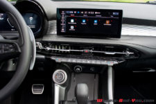 Doté d’un écran-compteur numérique de 12.3″ et d’un écran central tactile de 10.25″ avec toute une rangée de raccourcis, la navigation demande un temps d’adaptation pour trouver toutes les informations nécessaires au réglage du véhicule. J’ai connu plus intuitif. Si besoin, l’assistant vocal Alexa d’Amazon vous aide et les mises à jour à distance se font via une connexion 4G. Les rangements sont nombreux et le pack Premium de cette version Veloce propose la recharge téléphone par induction.