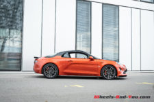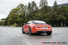 Si la mécanique reste la même, à savoir un 4 cylindres turbo de 1’798 cm3, les ingénieurs Alpine ont légèrement augmenté la puissance sur cette S, passant de 292 à 300 ch. Pour le couple, c’est un gain de 20 Nm et maintenant nous avons un total de 340 Nm. Grâce au « Pack Aéro », la vitesse maximum atteint 275 km/h (contre 250 km/h sans cette option), alors que le 0-100 km/h est abattu en 4.2 secondes, avec ou sans pack.