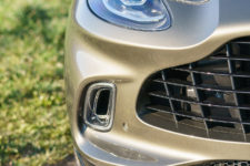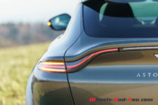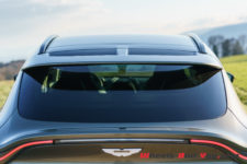 Dès le premier coup d’œil, et malgré sa stature de gros SUV, aucun doute, le style Aston Martin est perpétré ! Calandre typique de la marque, long capot arrondi avec ouilles de refroidissement ou face arrière qui intègre un bandeau lumineux semblable à celui de la New Vantage, le DBX ne peut dissimuler son origine. Je lui trouve un savant mélange de rondeurs et d’angles vifs, de sobriété et de dynamisme. A vrai dire, malgré des proportions classiques pour son segment, son style le rend immédiatement reconnaissable. Son profil tendu avec de beaux extracteurs d’air derrière les roues avant rappelle les sportives de la marque, alors que l’aileron intégré au capot de malle est peut-être le seul point discutable de son design. Je crois que je l’aurais préféré un peu moins prononcé. Le becquet en haut du pare-brise arrière, parfaitement intégré, peaufine cette réussite.
