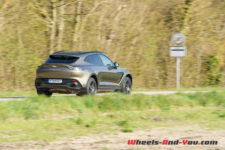 Ces deux détails évoqués, je suis littéralement emballé par le comportement routier du DBX. Son amortissement est de loin le plus performant de tous les SUV que j’ai eu l’occasion de tester pour Wheels And You, et même bien meilleur que celui de bon nombre de sportives. Malgré le poids conséquent, on ne le ressent pratiquement pas et les mouvements de caisse restent très limités et parfaitement gérés quel que soit le mode de conduite choisi. Pour autant, les transferts de masse demeurent efficaces et, en mode Sport+ qui réduit les assistances dynamiques, le DBX se place en légère dérive dès la fin du freinage, une vigoureuse remise des gaz permettant ensuite d’entretenir la glisse à volonté. C’est juste grisant ! Attention tout de même sur petite route car en le mettant en travers, on ratisse vite une sacrée largeur ! Et le meilleur dans tout ça, c’est que ces propriétés dynamiques ne sont pas proposées au détriment du confort, une autre parmi les particularités Aston Martin. En effet, celui-ci est souverain.