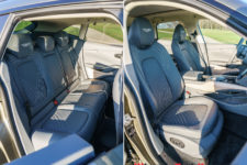 A l’arrière, la place pour les passagers est généreuse et tout aussi confortable qu’à l’avant, avec notamment des sièges climatisés et chauffants ainsi qu’un réglage de chauffage et de climatisation séparée droite/gauche. Avec 632 litres, le coffre est généreux, volume qui grimpe à plus de 1’500 litres une fois les sièges arrière rabattus. Bien entendu, le traditionnel parapluie de la marque y a sa place.