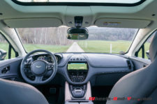 La finition intérieure à la qualité quasi sans pareille et l’odeur caractéristique des cuirs pleine fleur qu’on retrouve dans chaque auto de la marque y participent pleinement. J’aurais certes souhaité une assise du siège pouvant être abaissée un peu plus mais à ce détail prêt, je suis toujours aussi séduit. En faisant abstraction de la hauteur de l’assise, on se croit dans une véritable sportive et, sur petites routes sinueuses, les sensations sont phénoménales. Repassé en mode GT et boîte auto, je me retrouve en une seconde dans un salon roulant parfaitement insonorisé et cosy qui franchit les gendarmes couchés presque sans secousse. Quant aux modes Terrain et Terrain+, ils entraînent un rehaussement de la garde au sol pour le moins impressionnant, augmentant la capacité de franchissement. Sans terrain adapté, je ne suis toutefois pas allé les tester, par respect pour cette belle anglaise.
