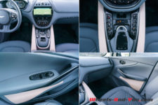 Dans les grandes lignes, le tableau de bord et la console centrale sont ceux de la DBS Superleggera, ce qui n’est pas pour me déplaire puisque j’aime moins le style intérieur plus torturé de la New Vantage. Tout au plus la grosse molette TouchPad centrale ne peut cacher sa provenance allemande, mais son intégration réussie la fait presque oublier. L’ergonomie est excellente malgré l’unique levier de clignotant/essuie-glaces situé à gauche du volant, à la mode américaine.