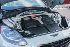 La face avant est nettement plus agressive. Si la traditionnelle calandre Aston Martin n’évolue pas, elle est complétée par plusieurs ouvertures annexes pour améliorer le refroidissement du groupe propulseur. Les feux de jours, toujours disposés sous les optiques principales, sont désormais horizontaux alors qu’une lame de spoiler fait son apparition. Personnellement, je trouve très réussi.