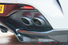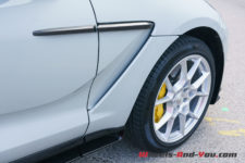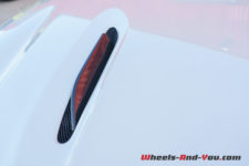 Sur les flancs, un nouveau bas de caisse renforce le dynamisme de la ligne alors que les ailes arrière sont affublées d’une sortie d’air supplémentaire derrière le passage de roue. L’arrière intègre désormais deux doubles sorties d’échappement, l’extracteur reçoit un volet qui en augmente l’efficacité alors que l’aileron en haut du pare-brise arrière est agrandit.