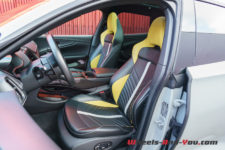 Dans cette versions survitaminée, notre destrier propose un intérieur spécifique alliant trois ou quatre couleurs selon options. Sur le véhicule mis à ma disposition, c’est un mariage de jaune, de gris clair et de deux anthracites à l’allure sportive du plus bel effet. Je me demande toutefois quelle proportion des acheteurs opteront pour un intérieur aussi sportif alors que le véhicule demeure un SUV.