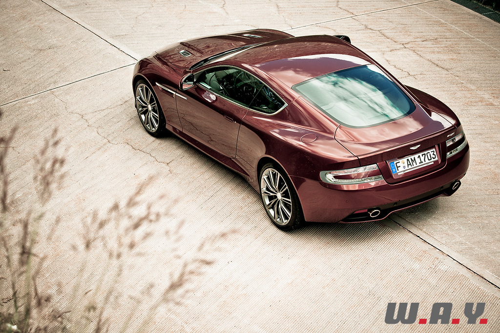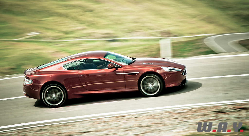 Démarrer un V12 Aston Martin demeure un instant magique. A peine réveillé, cette grosse cylindrée vous emmène dans un autre monde, celui du luxe et de la volupté. Le son est grave mais enjoué, l’inertie plutôt limitée pour une cylindrée de 6.0 litres. Velouté et souple à bas régime, il se fait plus rageur dès 4’500 t/min et devient une sorte de rauquement lyrique au-dessus de 5’500 t/min ! Avec une zone rouge à 6’800 t/min, il développe son couple maxi de 570 Nm assez haut (5’750 t/min) et sa puissance maxi de 497 CV à 6’500 t/min. Ce moteur tout en aluminium partage sa base avec celui qui équipe les DB9, DBS ou Rapide, avec une puissance variant selon le modèle entre 477 et 517 CV. La boîte automatique à convertisseur Touchtronic 2 est disposée sur l’essieu arrière pour une meilleure répartition des masses. Certes en termes de transmission d’autres optent pour des technologies plus évoluées ou plus sportives sur le papier, mais dans cette voiture plus GT que réelle sportive, elle s’avère un excellent choix, très adapté et plus agréable que la boîte robotisée Sportshift II essayée sur la V8 Vantage Roadster S l’année dernière.