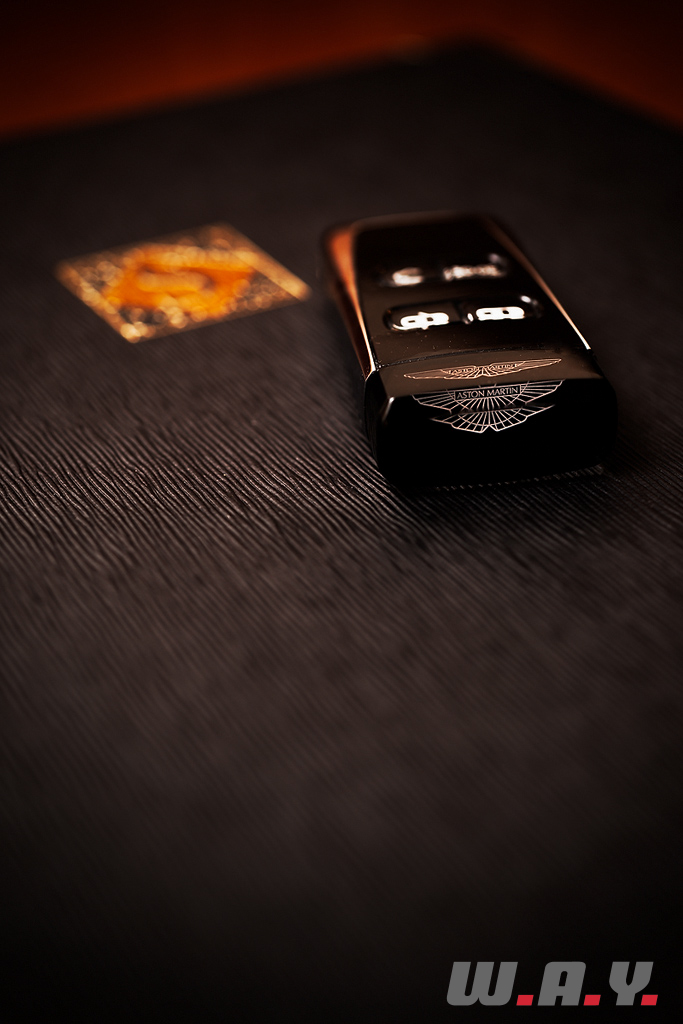 Dès la porte conducteur ouverte, je me retrouve dans l’univers d’un habitacle Aston Martin : sellerie cuir pleine fleur de la meilleure qualité – notre voiture de test présentait la teinte Bitter Chocolate du meilleur effet – finition parfaitement soignée jusque dans les moindres détails, on retrouve les éléments déjà présentés dans les essais de la V8 Vantage S Roadster et de la Rapide. A noter que la teinte de l’intérieur est séparée en deux options distinctes, l’une pour le haut des portes et du tableau de bord, l’autre pour les contreportes et le tunnel central. Notre véhicule arbore une colonne centrale de teinte Piano Black très mode. La mise en route se fait toujours en enfonçant la sublime clé électronique à l’insigne Aston Martin en cristal dans son logement situé sur la colonne centrale, lui-même entouré des quatre boutons de commande de la boîte de vitesses Touchtronic 2.